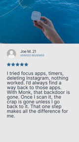 Other blockers live where temptation does. Monk doesn’t. If you don’t tap, you don’t get back in. Simple. Unbreakable.