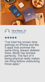 Monk is a physical device, not just another app. That creates a real, tangible barrier between you and your distractions. When you tap the Monk, it blocks the apps you’ve selected, and they stay locked until you tap again, meaning you need to have the device with you.