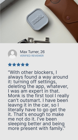 Other blockers live where temptation does. Monk doesn’t. If you don’t tap, you don’t get back in. Simple. Unbreakable.